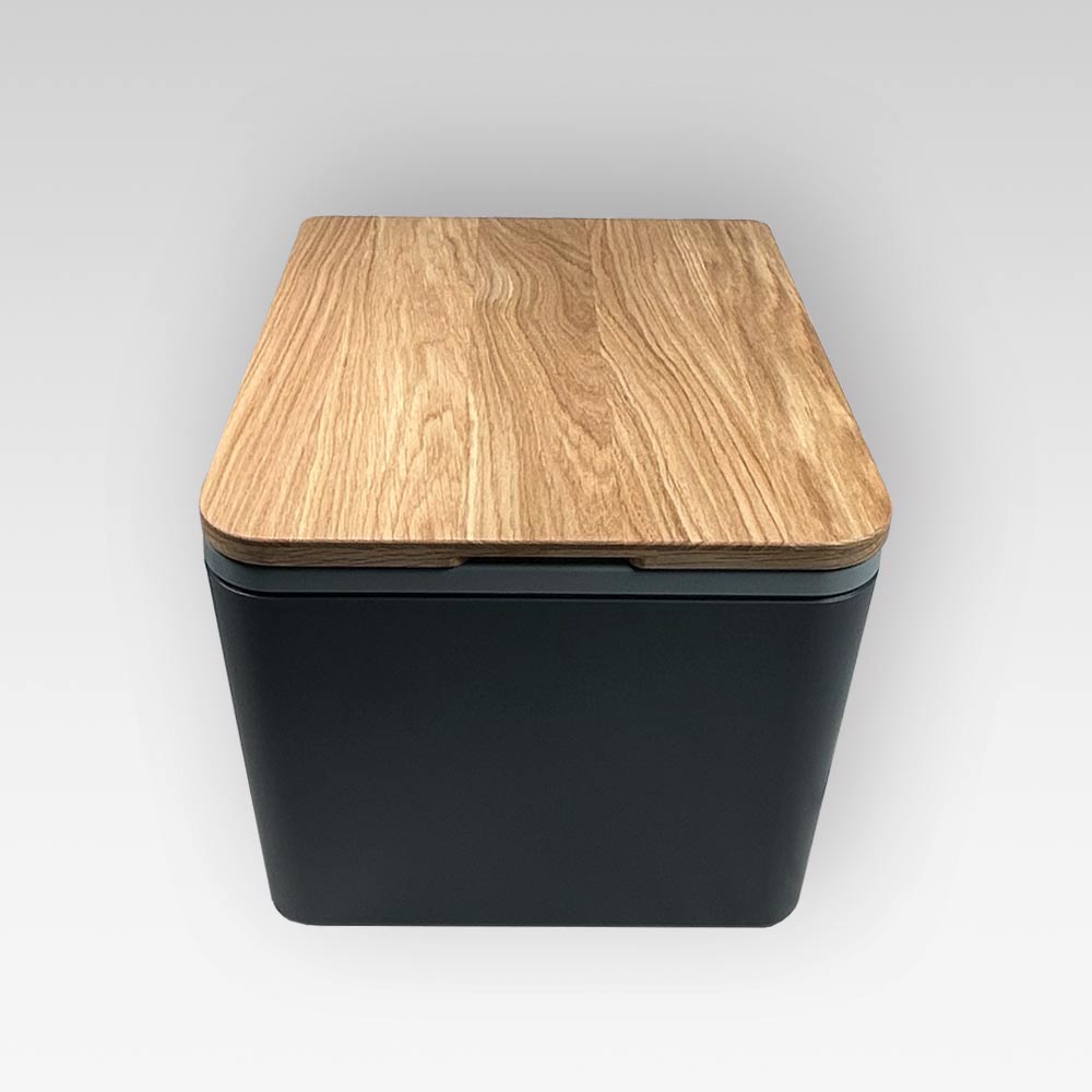 - Nur bei Premium-Variante: Holzdeckel